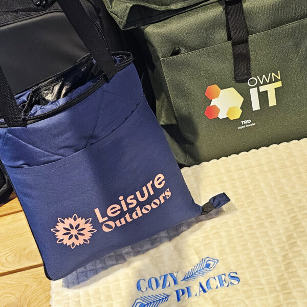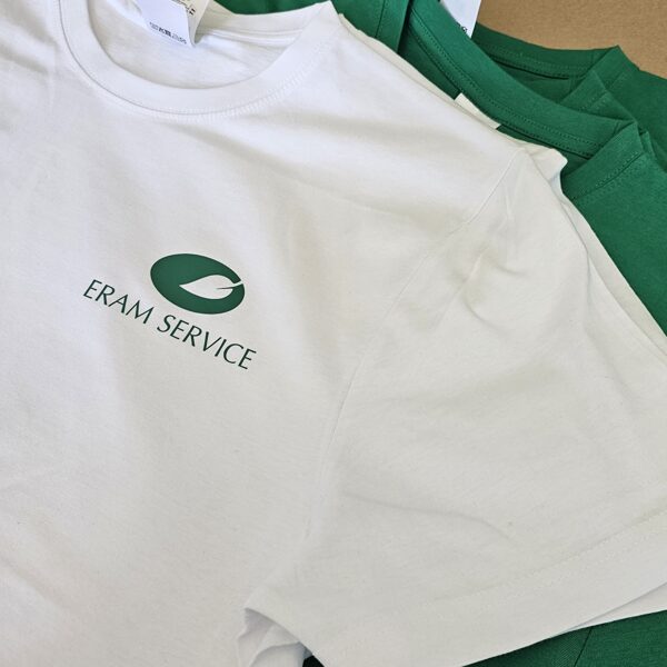 Šilkografinė spauda – spalvingas logotipas spaudžiamas tiesiai ant paviršiaus; tinka lygiems audiniams, plastikui.